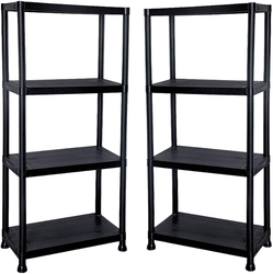 Heavy-Duty Black Plastic Shelving Unit Adjustable Storage Organiser for Garage with Feature As Tool Rack